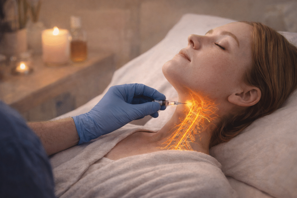 Stellate Ganglion Block (SGB) is a minimally invasive injection that targets a group of nerves in the neck involved in the body’s fight-or-flight response. It may help regulate the sympathetic nervous system and is being explored for conditions related to trauma and chronic stress. SGB may help support relief for: